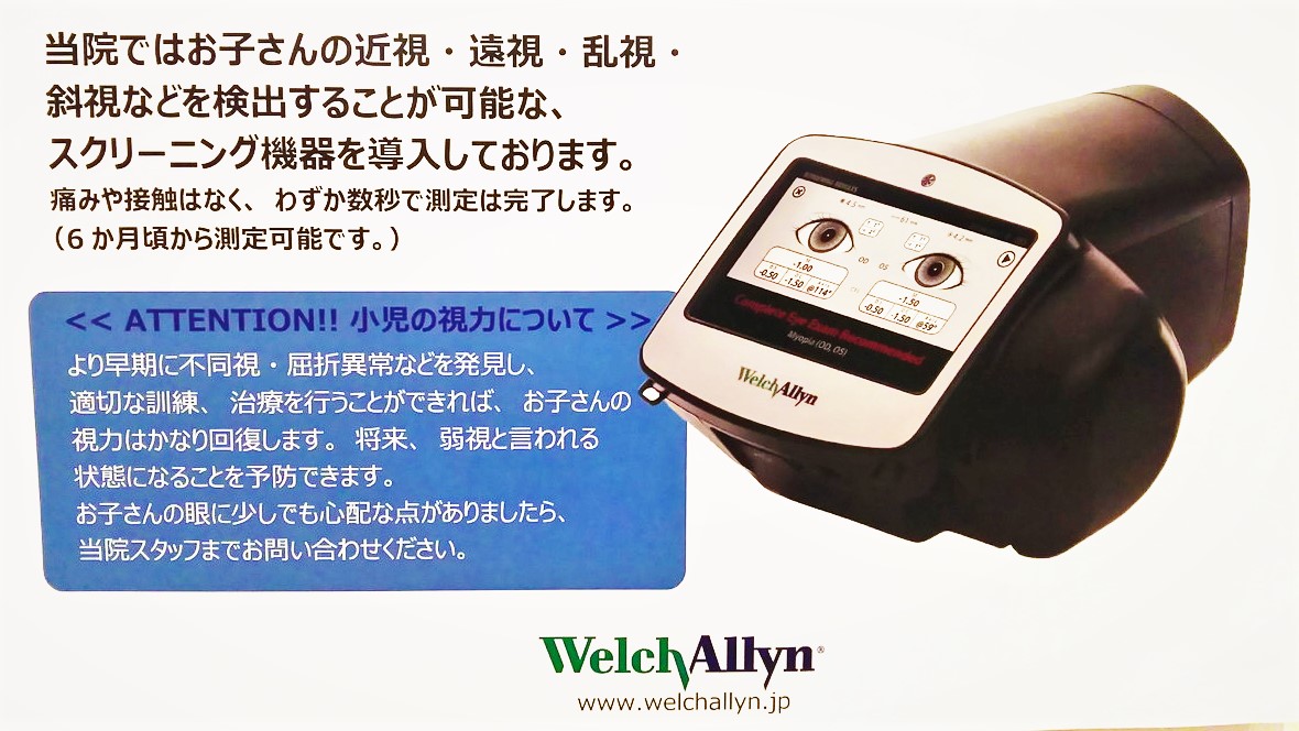 近視 乱視 斜視などがその場で分かり眼科へご紹介しています。